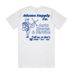 RELAXED FIT, CREW NECK FEATURINGÂ A DOUBLE SIDED PRINT:Â ADAMS SUPPLY CO. DETAIL ON THE LEFT CHEST &Â FULL BACKÂ DETAIL.Â
